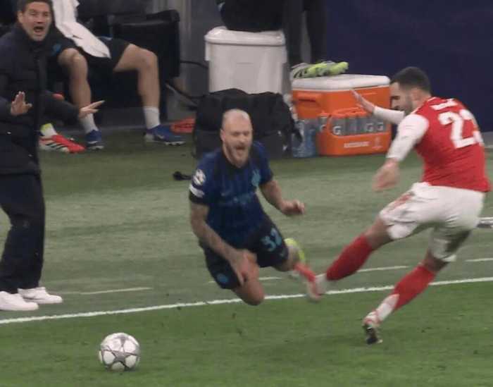 #国际米兰1比3阿森纳# 梅里诺在下半场对迪马尔科犯规被黄牌警告。至此,他在本赛季的欧冠联赛阶段中已经3次被黄牌警告。